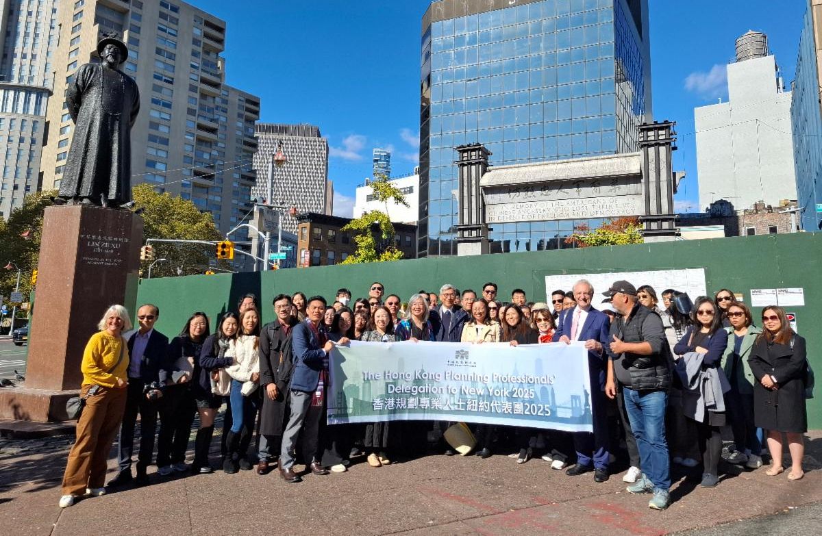 Over 50 planning professionals from the Hong Kong Institute of Planners visited New York for a week-long (Oct 18 – 25) professional exchange to share best practices and learn about New York’s planning policies and infrastructure projects. Supported by the Hong Kong Economic and Trade Office in New York (HKETONY), the delegation organised an urban symposium, titled “Planning for New Generation World Class City: Opportunities and Challenges of Urban and Rural Regeneration from Urban Planning Perspective” (Oct 22), which focused on urban and rural regeneration in both cities. Delivering welcome remarks at the symposium, Director of HKETONY Maisie Ho highlighted both cities’ shared urban challenges and sustainable development goals, noting the symposium fostered exchange to build resilient, future-ready world-class cities. In a fireside chat (Oct 23) exploring the future of sustainable and livable global cities, Ms. Ho highlighted Hong Kong’s commitment to carbon neutrality by 2050, and its leadership role as Asia’s top green bond issuer, supported by a vibrant innovative green technology ecosystem. While in New York, the delegation engaged with leading planners, architects and policymakers and visited landmark sites such as the High Line, Hudson Yards and Central Park. Key highlights included discussions with New York City’s Department of City Planning on post-pandemic revitalisation and an in-depth exchange with New York City Economic Development Corporation and Chinatown partnership Local Development Corporation on the Chinatown Connection Project.