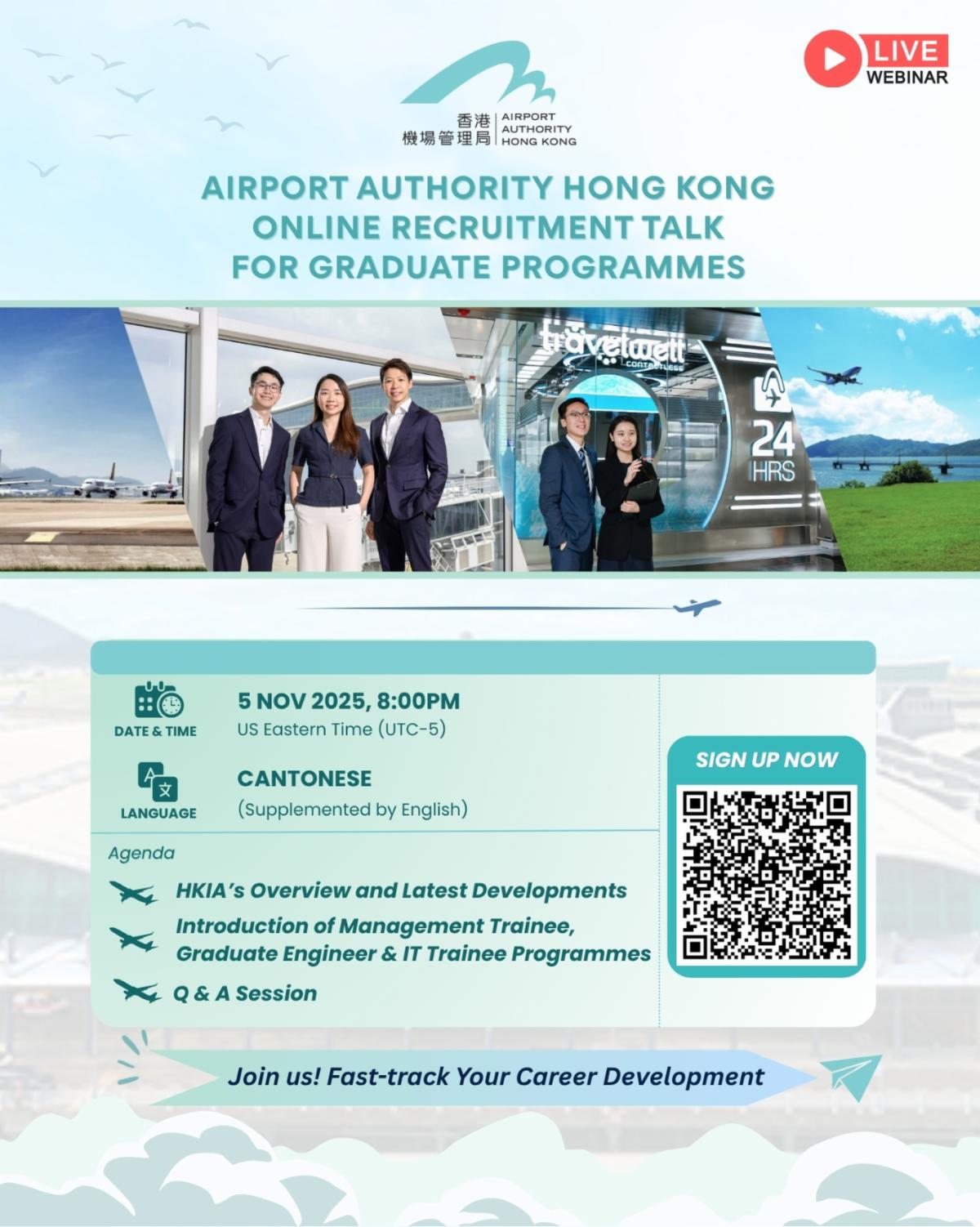 | Shaw Prize award presentation held | Four distinguished scientists were honoured with the prestigious Shaw Prize in Hong Kong on Oct 21 for their exceptional contributions in their respective fields. The 2025 laureates are John Richard Bond, University Professor at the Canadian Institute for Theoretical Astrophysics of the University of Toronto, and George Efstathiou, Emeritus Professor of Astrophysics (1909), University of Cambridge (Astronomy); Wolfgang Baumeister, Director Emeritus and Scientific Member of Max Planck Institute of Biochemistry (Life Science and Medicine); and Kenji Fukaya, Professor of Beijing Institute of Mathematical Sciences and Applications and the Yau Mathematical Sciences Center at Tsinghua University (Mathematical Sciences). | | Airport Authority Hong Kong to host recruitment talk | Are you ready to take your career to new heights? The Airport Authority Hong Kong (AA) is seeking talented individuals who thrive on challenges and aspire to be part of the AA family. Established in 1995, AA is a statutory body responsible for overseeing the operation and development of Hong Kong International Airport. Join AA for an online recruitment talk on Nov 5 at 8:00 PM (US Eastern Time) to learn more about exciting career opportunities with AA. Register here: https://forms.office.com/UStalk | | | |