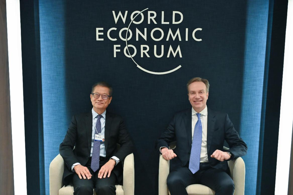 Delivering a keynote speech at the 2026 Davos-Caixin CEO Luncheon (Jan 21), Mr Chan introduced Hong Kong’s development vision and strategic positioning in finance, trade and innovation and technology. He highlighted Hong Kong’s collaboration with neighbouring cities in the Guangdong-Hong Kong-Macao Greater Bay Area on financial and technological innovation. In a business exchange session, he engaged nearly 100 global leaders on economic outlooks, strategies to enhance economic resilience, and ways to promote sustainable growth. During his WEF engagements (Jan 20), Mr Chan shared Hong Kong’s latest developments and unique strengths as an international financial centre, emphasising its proactive and prudent approach to digital assets development, following the principle of “same activity, same risk, same regulation” to promote responsible and sustainable market development.