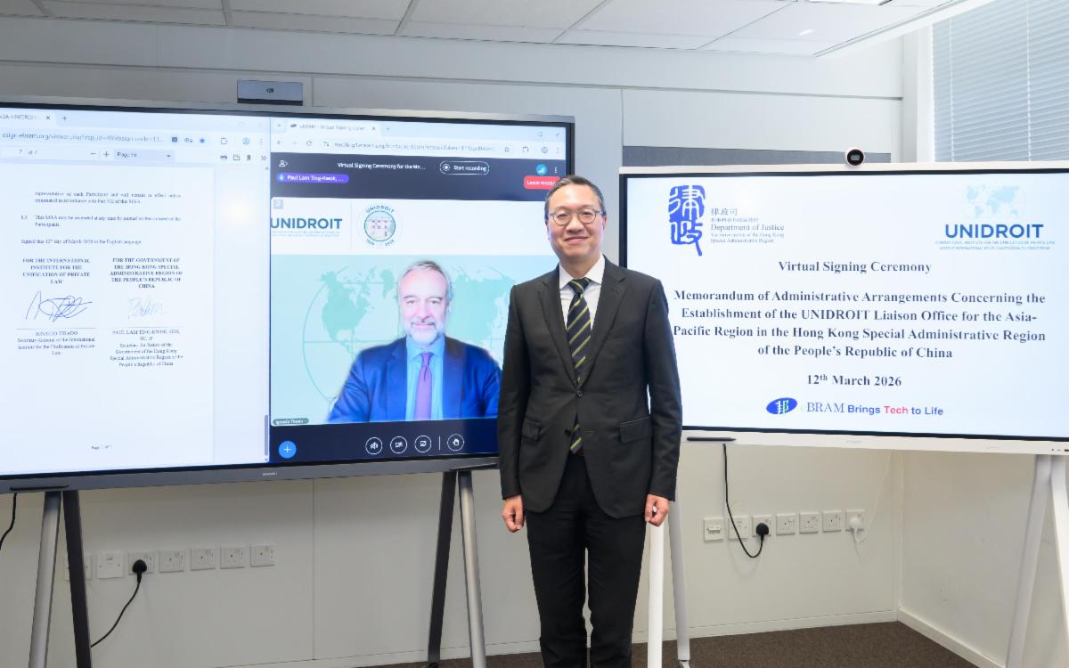 | Hong Kong to host UNIDROIT Asia-Pacific liaison office | Secretary for Justice Paul Lam and the Secretary-General of the International Institute for the Unification of Private Law (UNIDROIT) Ignacio Tirado signed a memorandum of administrative arrangements to establish the UNIDROIT Liaison Office for the Asia-Pacific Region in Hong Kong (Mar 12). The agreement marks the first time in UNIDROIT’s 100-year history that the organisation has set up a regional presence outside its headquarters in Rome. Mr Lam said Hong Kong is an ideal home for UNIDROIT's first regional presence, highlighting the city’s role as an international legal hub, underpinned by a robust common law system and a world-class legal infrastructure. The liaison office is expected to open in November, with the Department of Justice and UNIDROIT planning to co-organise the Asia-Pacific International Private Law Summit and a Centenary Regional Event during Hong Kong Legal Week 2026. | | INNOVATION AND TECHNOLOGY | | Hong Kong delegation shines at Geneva inventions exhibition | A Hong Kong delegation of 44 organisations won nearly 300 prizes at the 51st International Exhibition of Inventions of Geneva (Mar 11 – 15), including a record 12 Special Awards, 57 Gold Medals with Congratulations of Jury and 98 Gold Medals, marking a best-ever performance for Hong Kong at the world’s largest inventions exhibition. The Oasis One International Limited also received the Grand Prix. Secretary for Innovation, Technology and Industry Sun Dong congratulated the delegation, highlighting Hong Kong’s strong innovation and technology capabilities and the HKSAR Government’s commitment to developing the city into an international I&T centre. | |